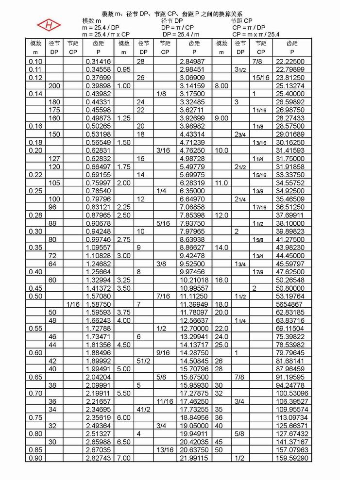 模數(shù)范圍:m0.1 ~ m28的模數(shù)制m;徑節(jié)制DP;節(jié)距制CP
